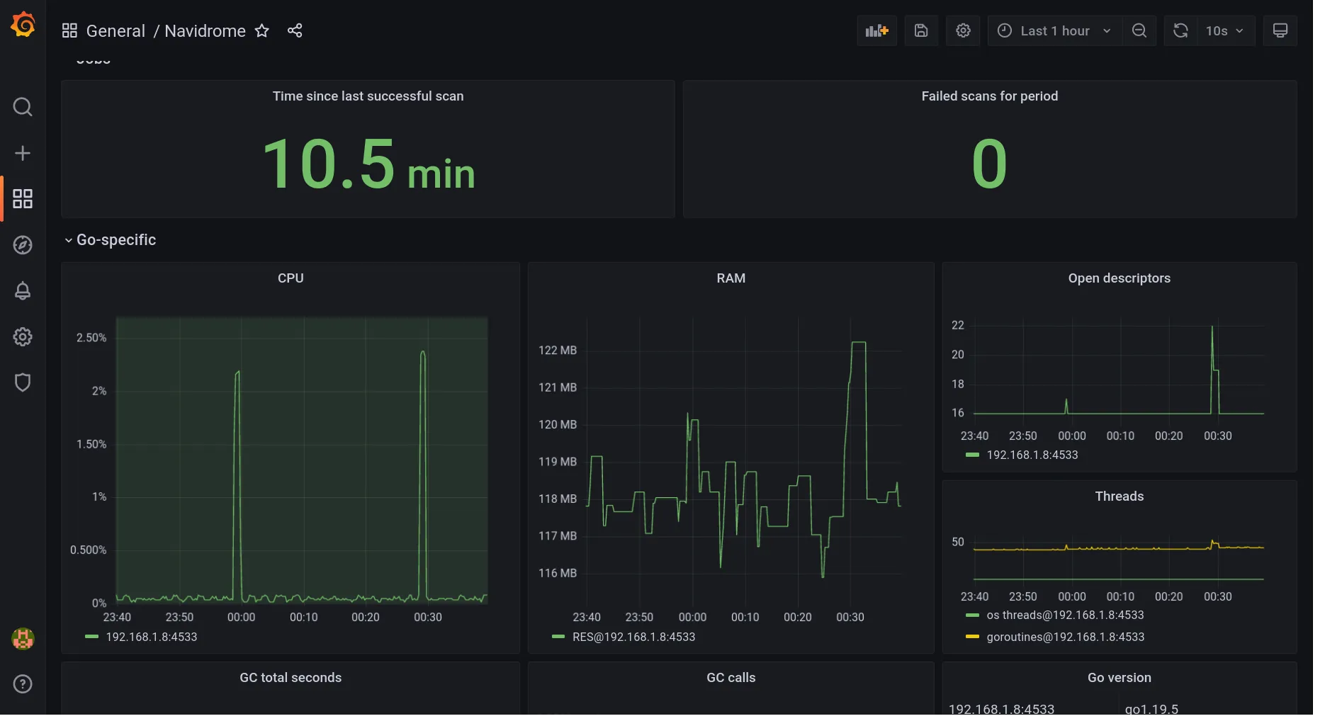 Currently, Navidrome supports monitoring and alerting using Prometheus/OpenMetrics standard. Example Grafana dashboard: